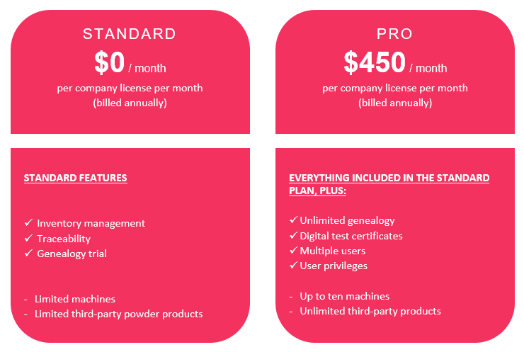 Barriers to additive manufacturing industrialization include powder quality and reusability, material handling, and inventory management. Today, these challenges around metal powder are managed through a plurality of systems for tracking inventory with individually populated spreadsheets and paper certificates. These various manual steps increase inefficiencies and offer neither a digital connection for automated traceability throughout the complete process chain nor output data for future predictive analytics.